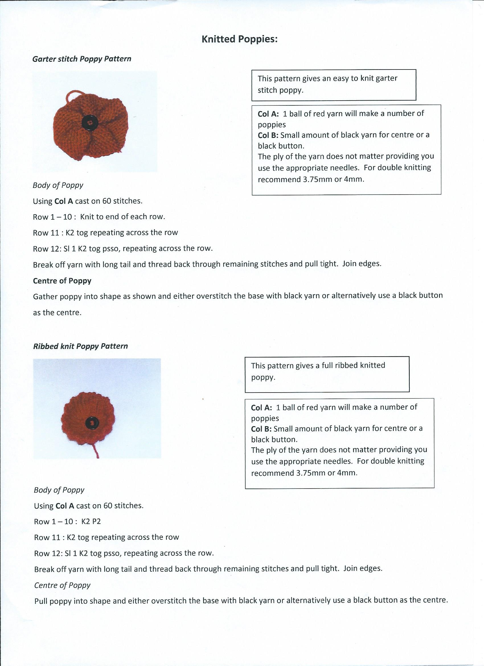 If you would like to knit or crochet some poppies please contact Faye Douglas – ph 8295799 after 5 p.m.
