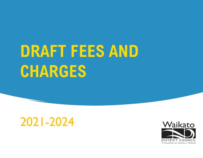 Proposed Fees and charges for Council Services which are reviewed every three years and include costs of facility hire, library borrowing, dog registration and many other services provided by Council. Details and feedback : https://shape.waikatodistrict.govt.nz/proposed-fees-and-charges-2021-2024