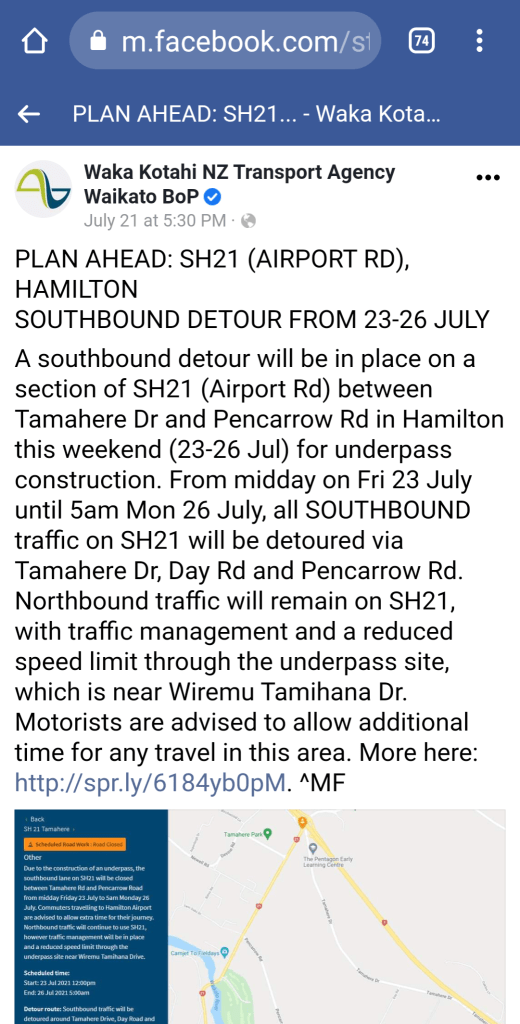 Detour on Airport Road at Tamahere this weekend. Share this: Click to share on X (Opens in new window) X Click to share on Facebook (Opens in new window) Facebook Like Loading...