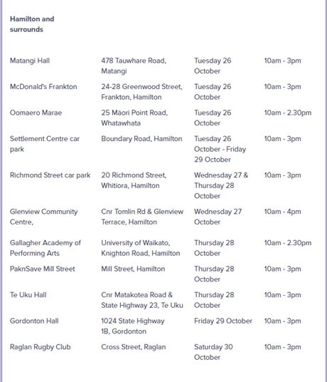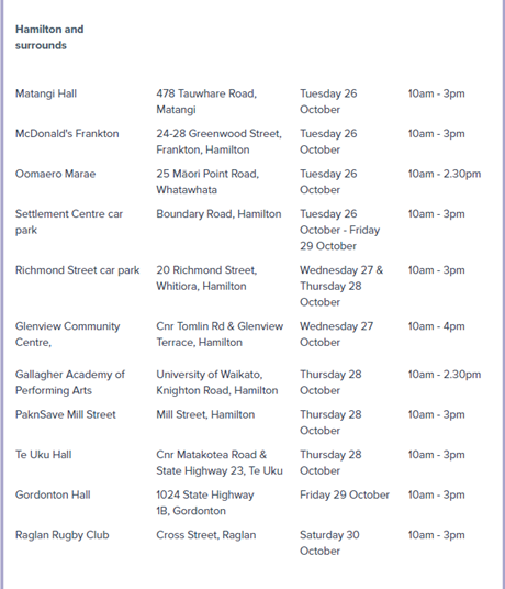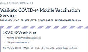 Mobile Vaccination Centre, Matangi Hall, 478 Tauwhare Road, Matangi 10 a.m. to 3 p.m. today, Tuesday 26 October 2021 https://www.healthpoint.co.nz/community-health-services/community-health/waikato-covid-19-mobile-vaccination-service/ Share this: Click to share on X (Opens in new window) X Click to share on Facebook (Opens in new window) Facebook Like Loading...