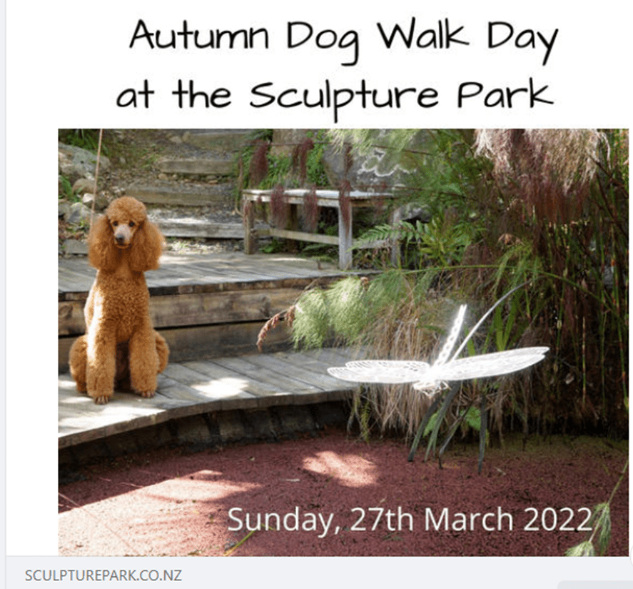 Dogs must be on leads to protect the wildlife. You might be lucky enough to spot a kereru or a sleeping ruru if you are alert. Please book online at www.sculpturepark.co.nz