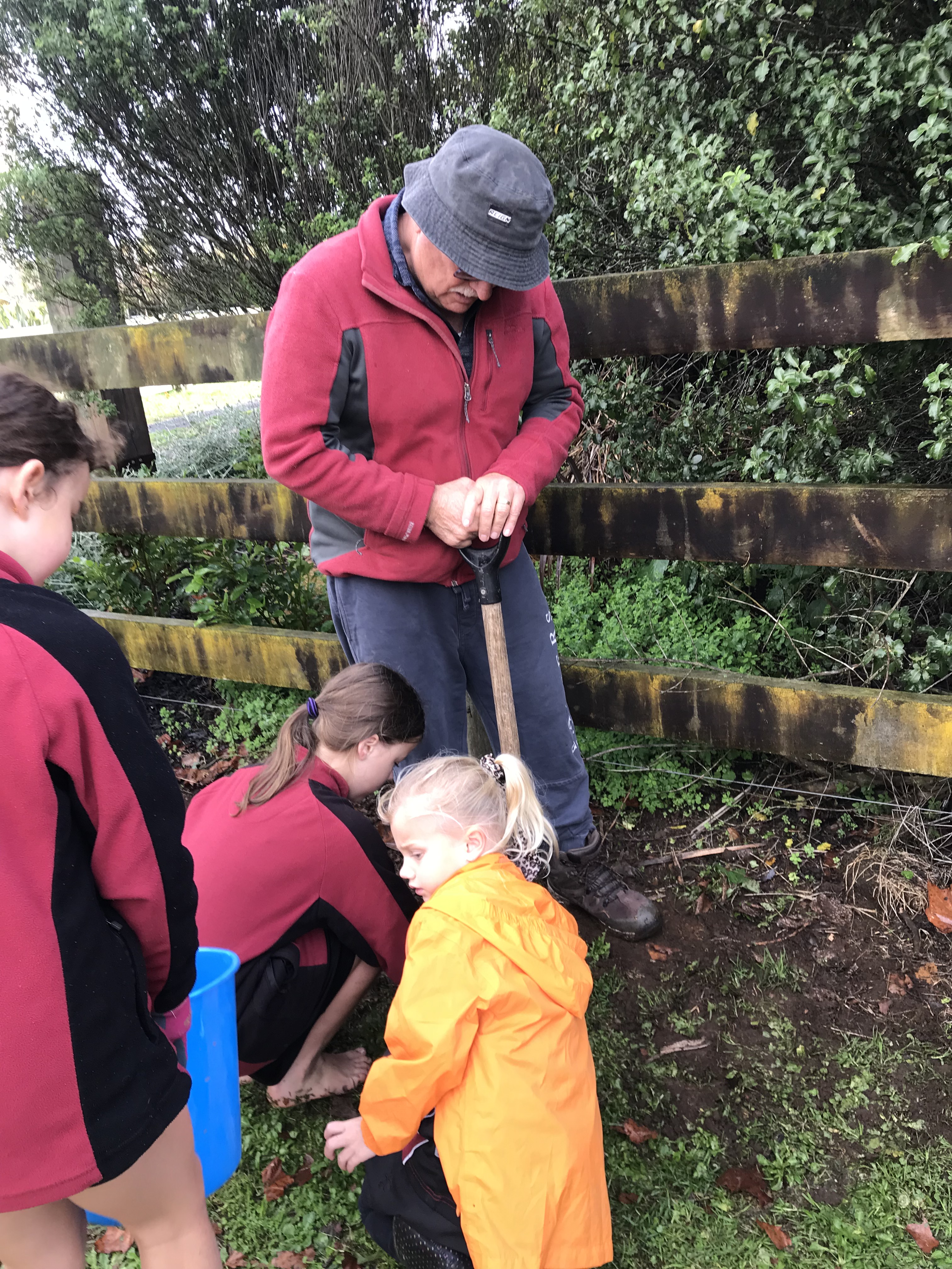Many of the community members who helped lead the planting had been very actively involved with school projects during the time that their own children attended Matangi School. The teachers enjoyed hearing about school fun and games two generations earlier over a very welcome morning tea hosted by the school staff. In future the current students will be able to tell their own story of how the daffodils got to be in the Jack Foster Reserve.