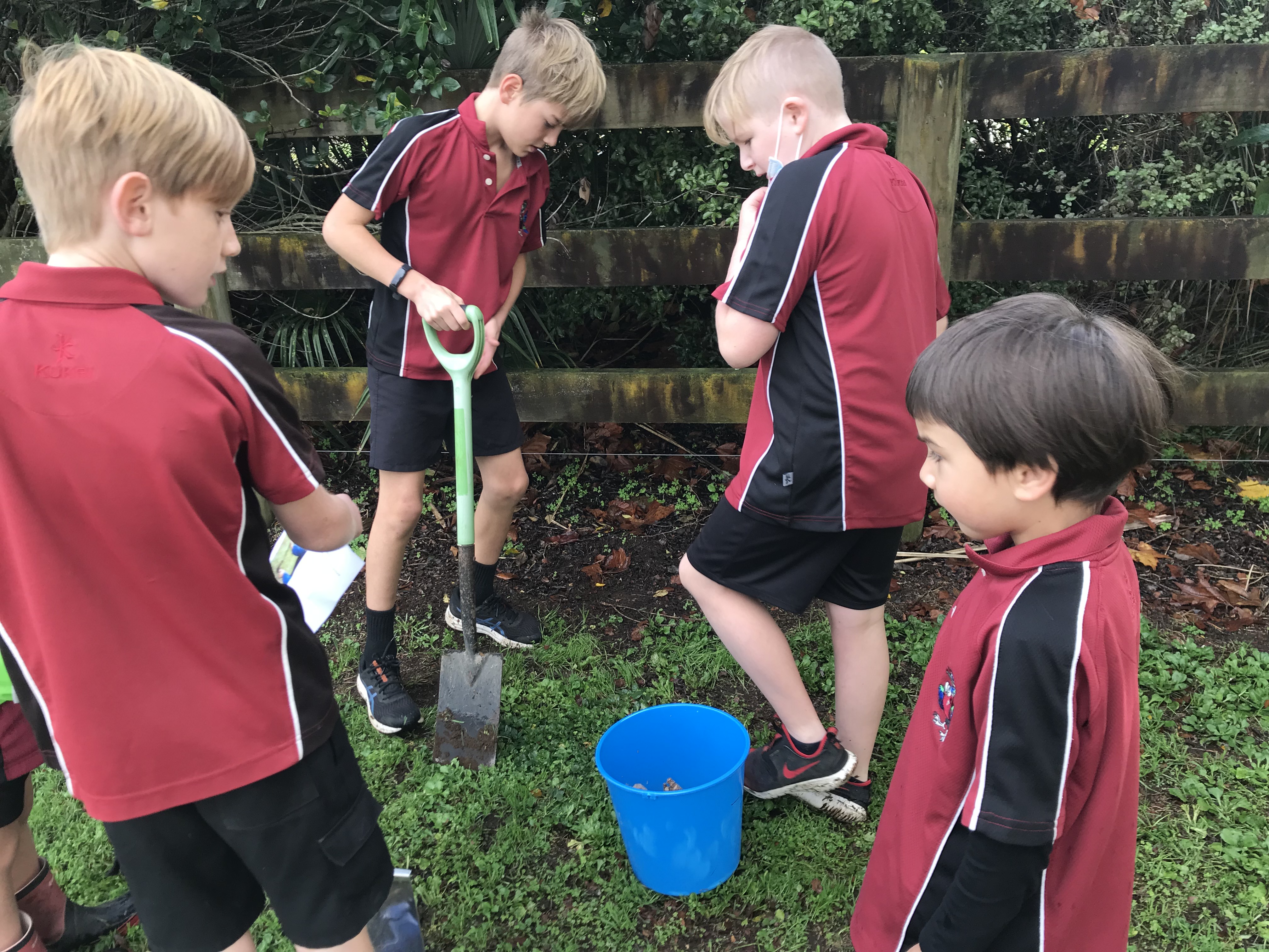 Matangi School students had their chance to contribute to the community on Friday May 20 when they joined teachers, parents and Matangi Community members in dodging the showers to plant more than 2,000 daffodils provided to the Community Committee by the Waikato District Council place making team. This is the second year for this great collaborative effort.