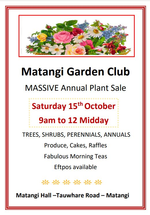 Welcome Back – Matangi Garden Club Plant Sale – Saturday, October 15, 9 a.m. to 12 p.m. Share this: Click to share on X (Opens in new window) X Click to share on Facebook (Opens in new window) Facebook Like Loading...