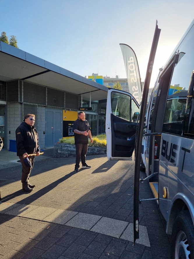 The new bus service offering public transport within the local communities and connecting them to the city at the University was blessed by Kaumatua of Ngāti Haua and Ngāti Wairere on February 8. Karakia, songs and speeches were shared and heard and the ribbon cut by the Chair of the Waikato Regional Council(WRC), Pamela Storey. Waikato District Council Mayor, Jacqui Church, Councillor Crystal Beavis, staff of the Kinetic Bus Company, WRC and Council staff involved with the planning and promotion of the service and local community Committee members were also present. We got to meet Laura who will be the driver most of the day from 10.30 to the last run. Route details below. Any queries you have may be brought to the Matangi Community Meeting on Tuesday 13 February at the Matangi Hall, 7.30 p.m.