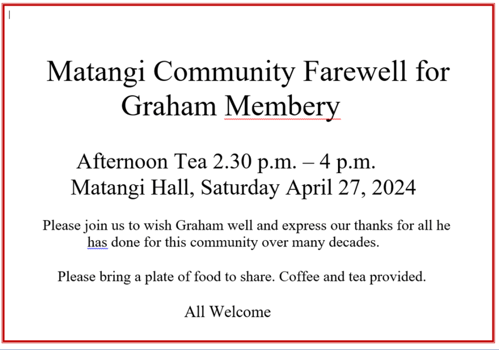 We hope you can join us next weekend to thank Graham for his work for the community and to share and hear a few stories.