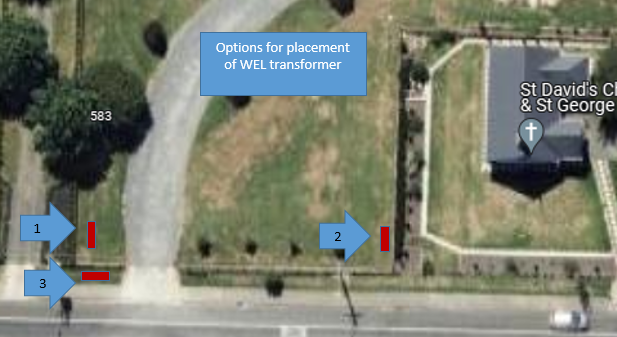 The Matangi Community Committee have been involved in discussions with WEL and Council on this issue. It acknowledges the limited locations available for locating the transformer in Matangi and agreed to support option one as the least obtrusive to our landscape and road verge while also enabling the transformer to be near a power pole and accessible to WEL staff. The following is the request from Council: