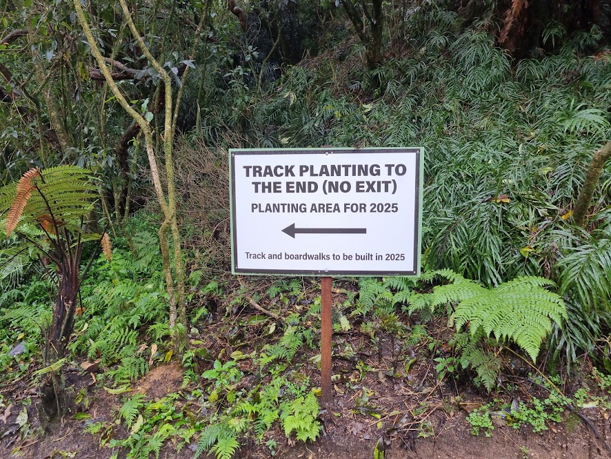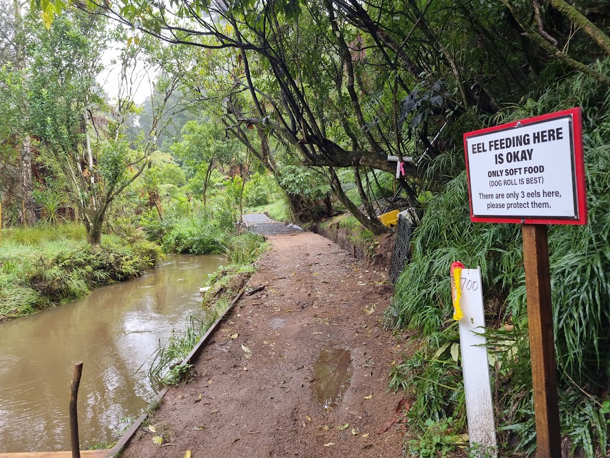 If you are a frequenter of the Allan Turner Bridge, that links Fuschia Lane and Woodcock Road, you will be aware of the amazing transformation of the gully below. The creators of that beautiful bush are now hard at work in the part of the same gully that is accessed from the end of Bilsthorpe. A huge amount of work has been done already and it will be exciting to watch the progress. Once you are down the gravel track it is an easy wander along the track, over the bridges, past the eels to the 2025 track development and planting, and back again. Plenty of water so child supervision is important. Feeding the big eels could be a highlight – take some soft dog roll. Otherwise just enjoy the quiet space, the birdsong and sound of flowing water.