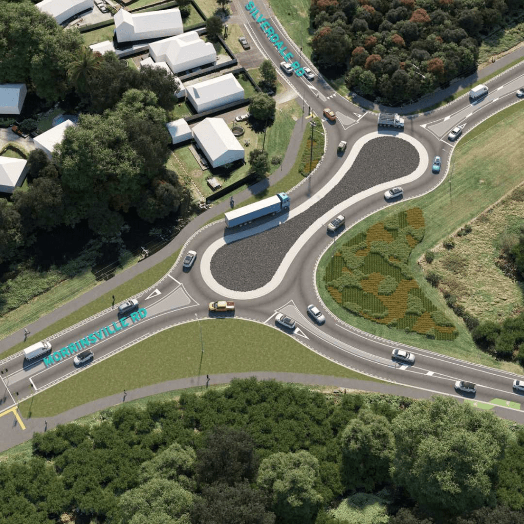 The first part of these changes, a peanut-shaped roundabout at the Silverdale/Matangi Rd intersecton (“Section 1”), was open for community consultation earlier this year.