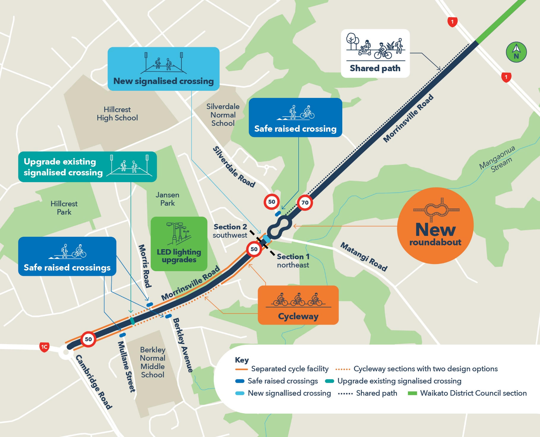 The Morrinsville Fit for Purpose Upgrades include other improvements as shown in the attached ‘Project overview map’ and on our project webpage hamilton.govt.nz/morrinsvilleroad.