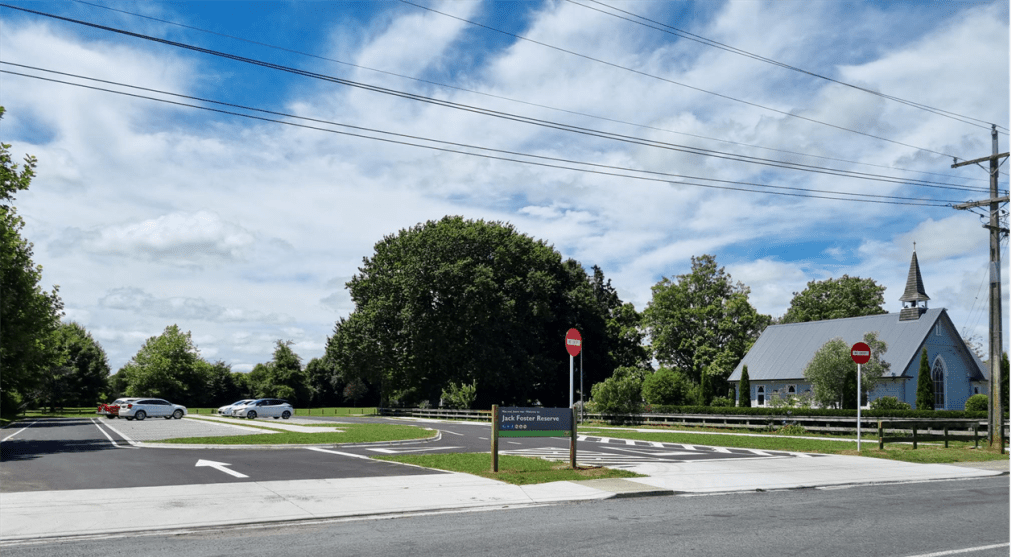 Tamahere Reserve reopened to visitors December 2025 after the removal of roadside pine trees and creation of a new parking area and path.